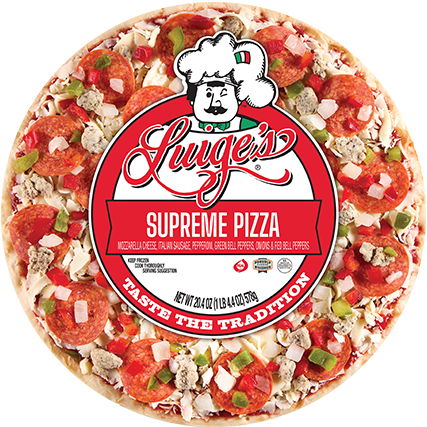 Wisconsin mozzarella, sausage, pepperoni, green and red peppers, and onions—this is a supreme pizza, all right. Grab a Luige’s Pizza and skip mealtime stress.